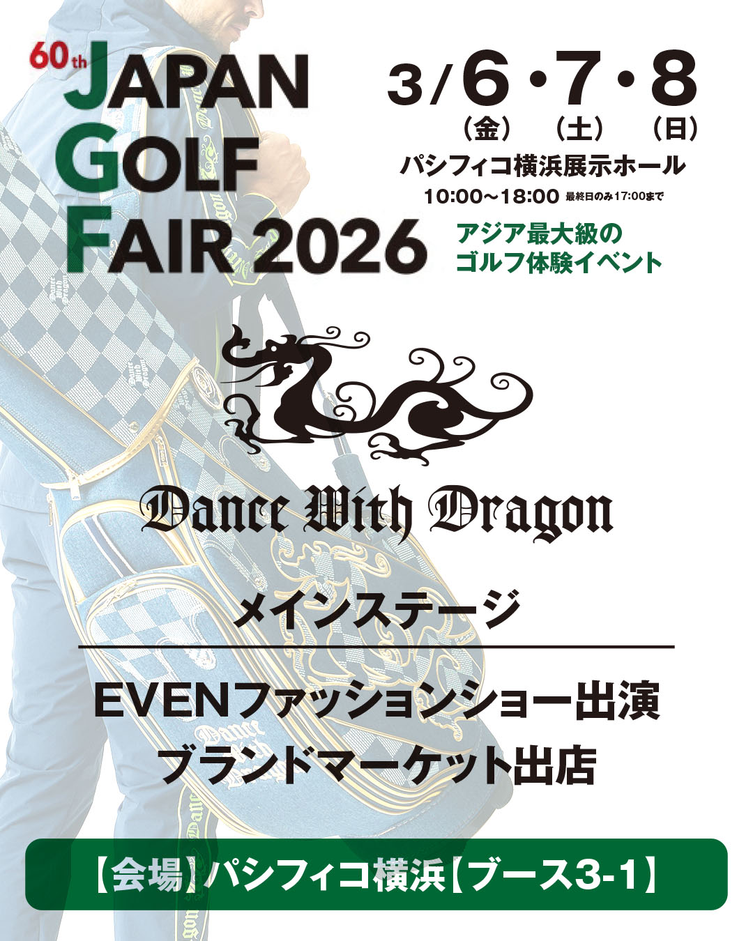 ゴルフフェアにお越しの際は、是非ダンスウィズドラゴン出店ブースにお立ち寄りください。