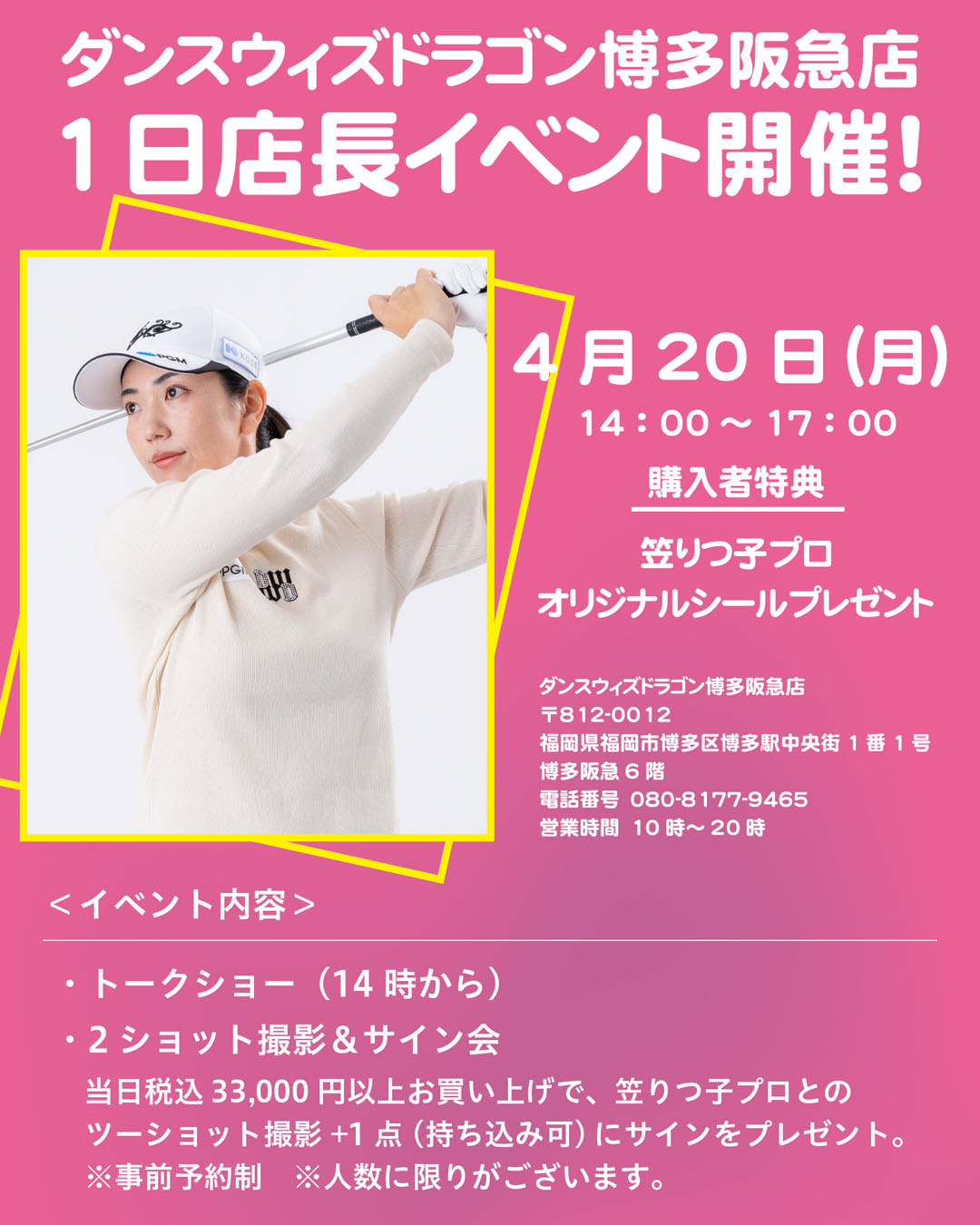 税込33,000円以上お買い上げで、笠りつ子プロとのツーショット撮影+1点(持ち込み可)にサインをプレゼント。