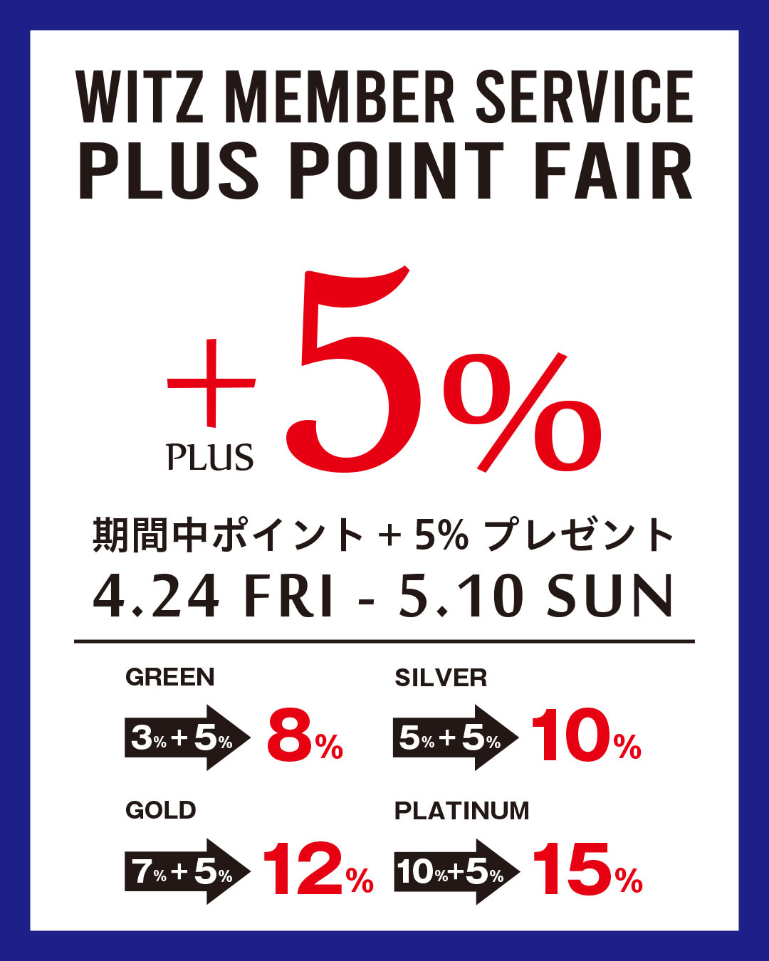 ポイントアップキャンペーン開催 dancewithdragon 2026-04-24 with コメントはまだありません いつもダンスウィズドラゴンをご愛顧頂きまして、誠にありがとうございます。 このたび日頃の感謝の気持ちをこめて、プラスポイントフェアを実施いたします。 期間中通常ポイントに+5%を付与させて頂きます。この機会に是非ご利用ください。 新作コレクションも入荷いたしましたので、この機会に是非ご購入ください。 開催店舗及び期間については下記になります。 ウィッツ公式オンラインストア・横浜山下公園店、大阪北堀江店